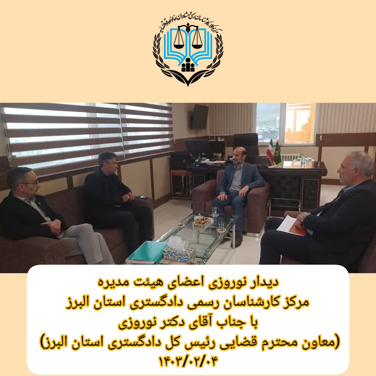 مشاهدهبه گزارش روابط عمومی مرکز کارشناسان رسمی دادگستری استان البرز: اعضای هیئت مدیره مرکز کارشناسان رسمی دادگستری استان البرز صبح روز سه شنبه مورخ 4 اردیبهشت ماه سال 1403 با حضور در دفتر آقای دکتر نوروزی، معاون محترم قضایی رئیس ...